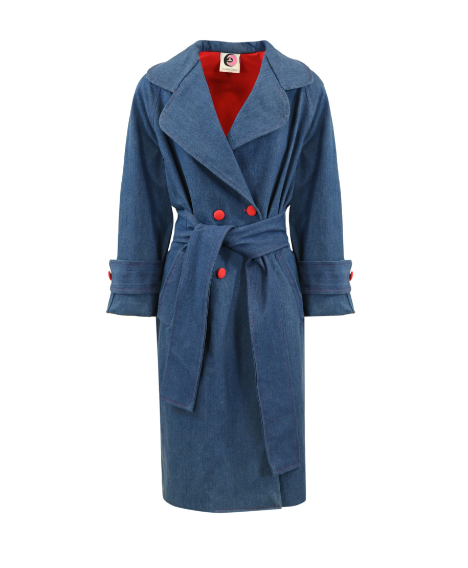 Trench a doppiopetto in denim con cintura.