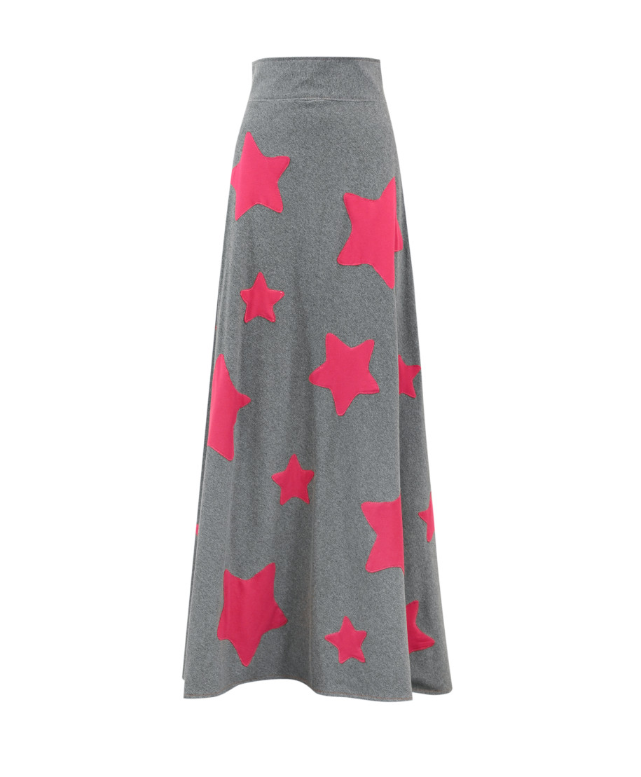 Gonna lunga a ruota in felpa grigia con stelle applicate.