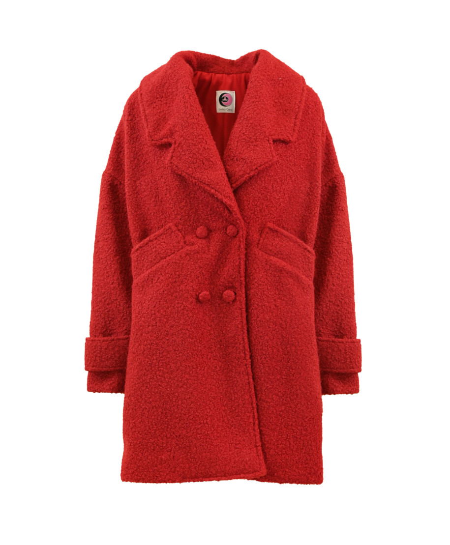 Cappotto in bouclé rosso, foderato con morbido tessuto tinta su tinta dalla silhouette oversize con spalle leggermente scese, che dona un look moderno e rilassato. I bottoni foderati dello stesso tessuto e le tasche frontali aggiungono un tocco di eleganza e praticità, mentre il tessuto bouclé avvolge con calore e morbidezza, garantendo il massimo comfort. È un capo versatile, ideale per un’uscita informale con amici, un aperitivo in città o per completare con carattere un look da lavoro. Indossato sopra un maglione o una camicia, si trasforma in un outfit sofisticato ma naturale. Un’aggiunta iconica al guardaroba, pensata per chi vuole affrontare la stagione fredda con stile.
